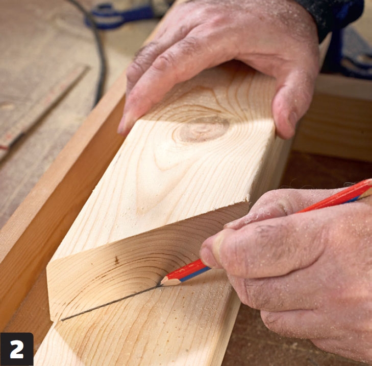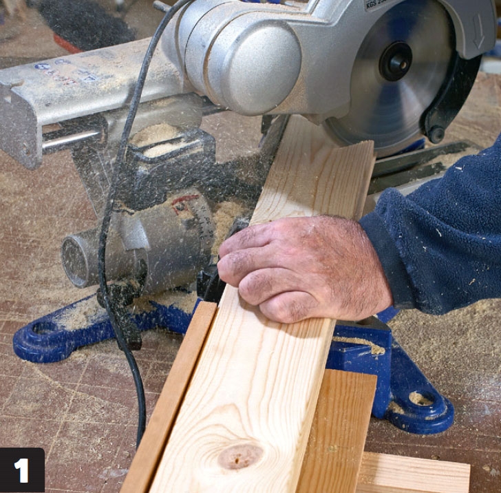 Såga till ramens fyra delar. Använd en kap-/geringssåg till att göra 45-graders snitt för hörnfogningar.