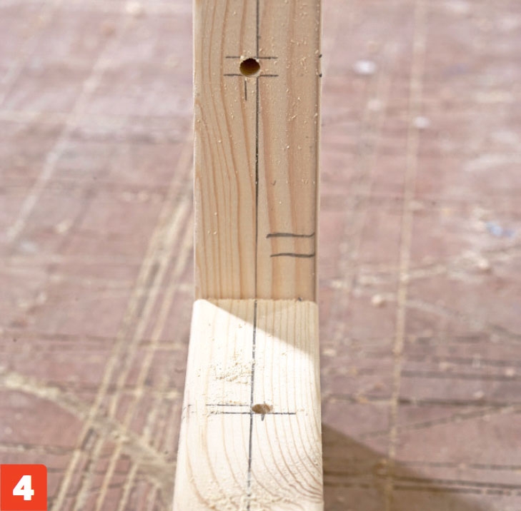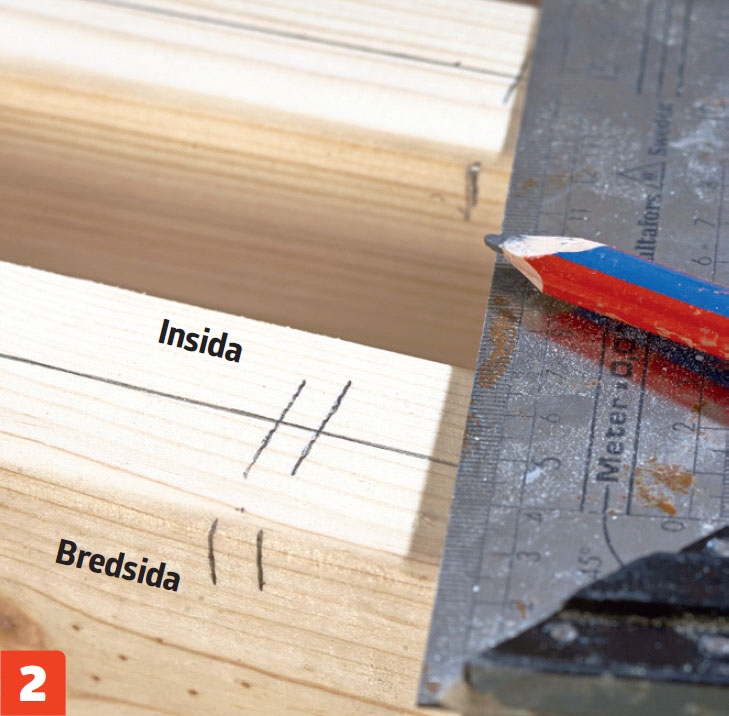 Märk ut för nätet på insidan. Tidigare ritade vi ut för maskeringsnätet på regelns breda sida. Nu flyttar vi det måttet till insidan, där vi ska borra. Använd en snickarvinkel.