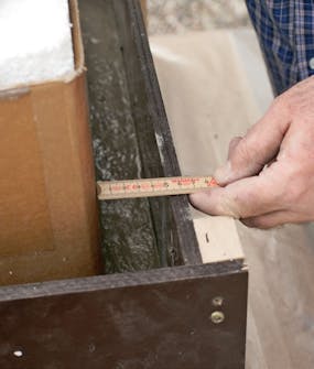 Packa betongen fortlöpande så att det inte bildas stora luftbubblor i den. Du kan använda en bit 25 x 50 mm regel att packa med. Arbeta försiktigt så att kartongen inte flyttar sig.