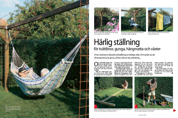 Härlig ställning för tvättlinor, gunga, hängmatta och växter