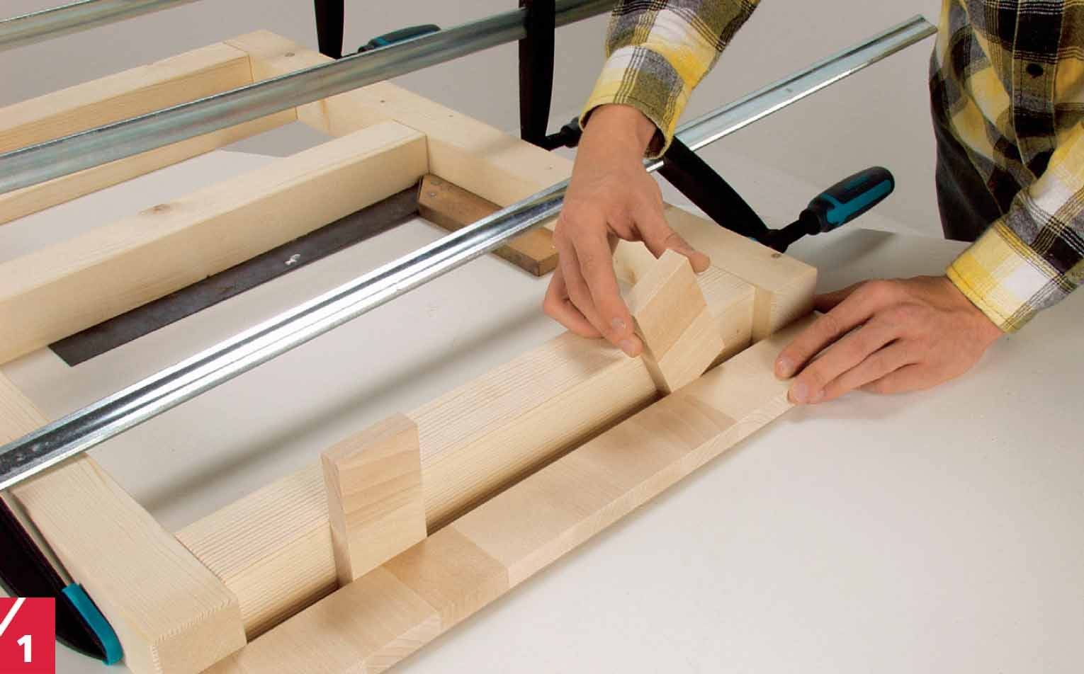 Underredet sätts ihop av två ramar som görs av lister och därefter sätts ihop med sex andra lister. Det finns olika sätt att sätta ihop delarna på och i tipsboxen får du förslag på två andra lösningar än den vi visar.