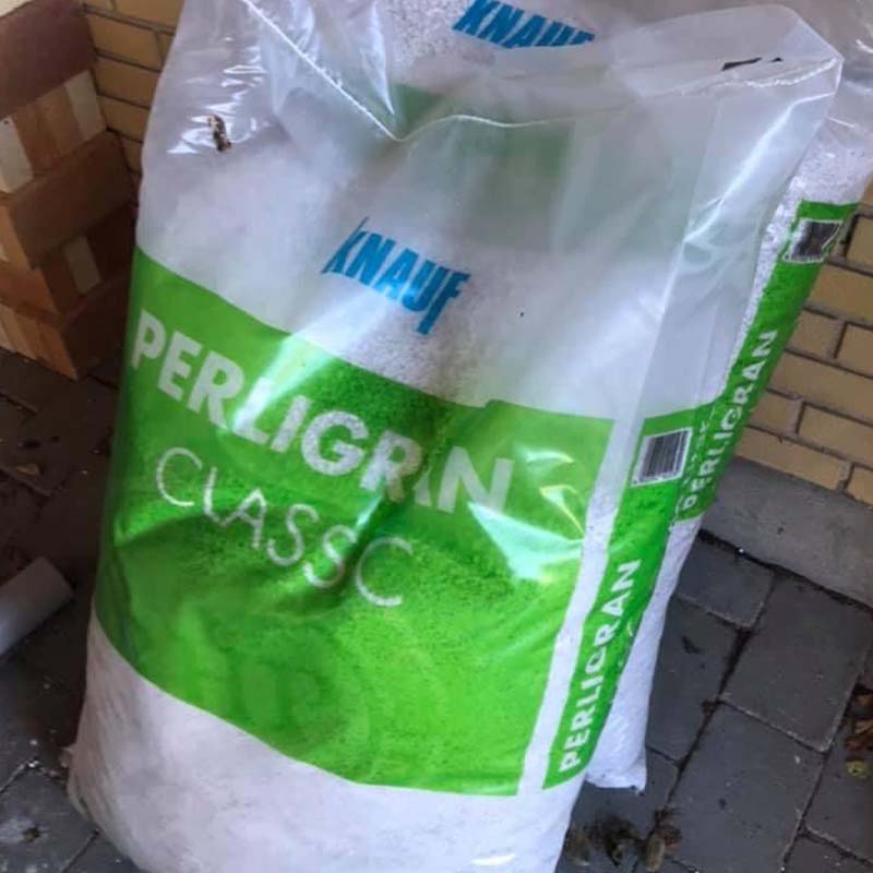 Perlit är ett material som är gjort av en vulkanisk sten. Det krossas och värms upp, så att det expanderar till små vita korn.