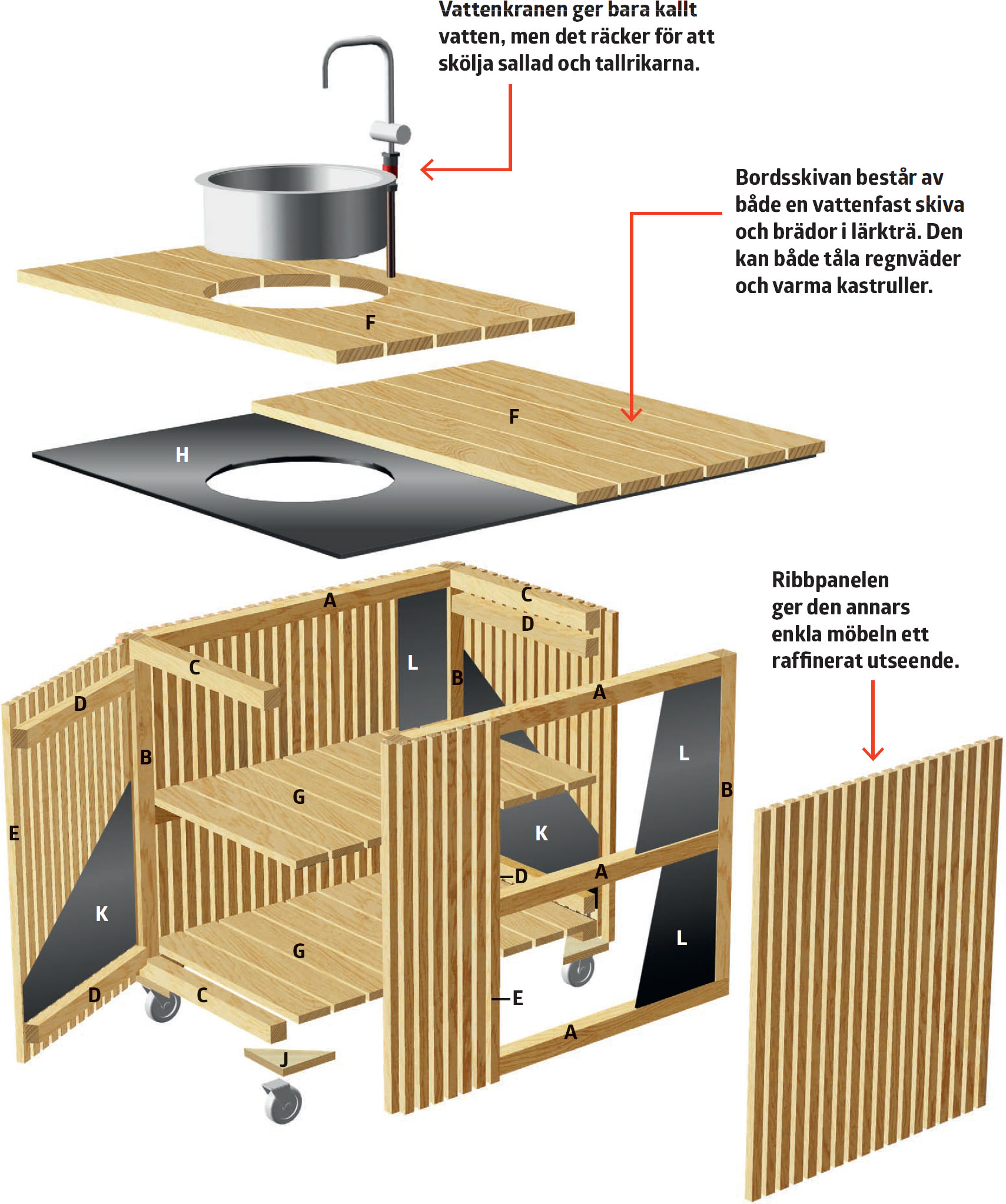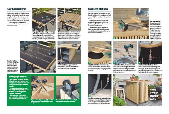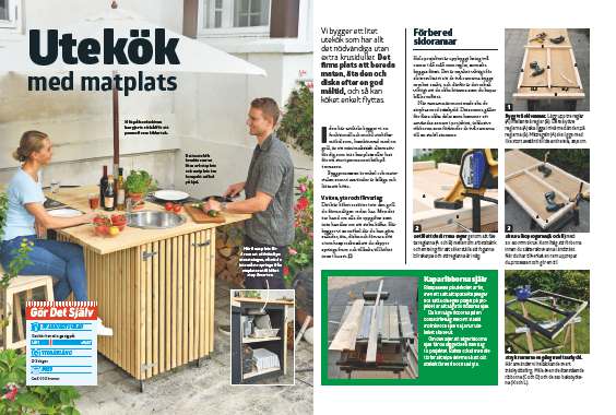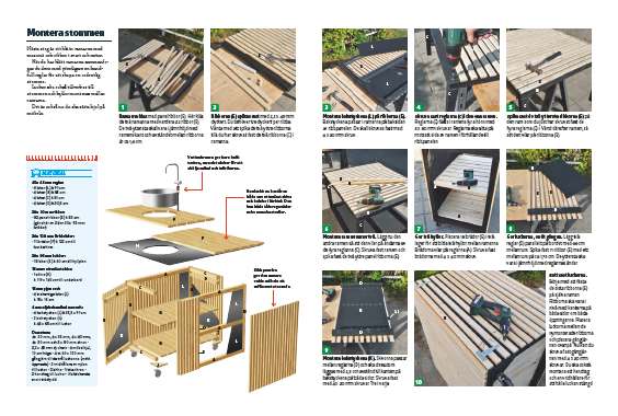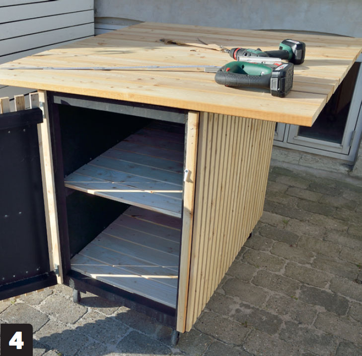 Sedan fäster du bordsskivan på stommen och det börjar se ut som ett komplett utekök.
