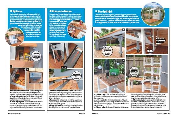 Grillhuset tar lite plats i trädgården, men vi har byggt det på ett sådant sätt att bord och pallar kan fällas ihop och skjutas in under huset. På så sätt tar det mindre plats när det inte används. Vi bygger även alla delar av grillhuset, och det gäller också möblerna. Vi använder bland annat överblivna terrassbrädor till pallar och bygger dem på ett sådant sätt att de lätt kan staplas och gömmas undan.