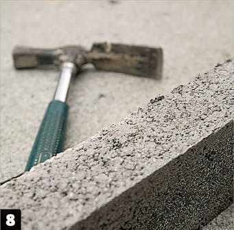 Knacka blocken på plats med en gummiklubba, om det behövs, så att de står i exakt samma höjd och bildar en vågrät kant överst. Här är det viktigt med precision, eftersom det ska byggas vidare ovanpå.