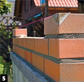 Sätt murarvinklar på de yttersta stenarna och spänn ett murarsnöre emellan. Då har du något att rätta dig efter, så att stenarna hamnar i våg och samtidigt ger en rak och jämn framsida.