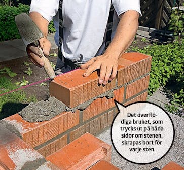 Lägg ut tegelstenarna på prov innan du börjar mura. Då får du en bra överblick över hur det bäst passar ihop och vilka stenar som behöver kapas.