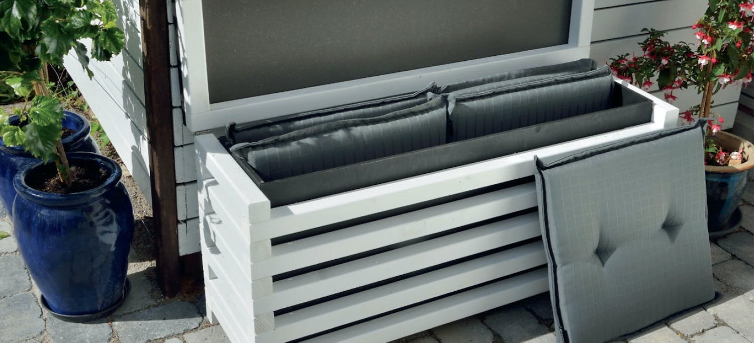 Cirka 500 kr för grillbord, 400 kr för dynlåda och 400 kr för blomlåda.