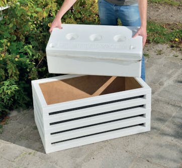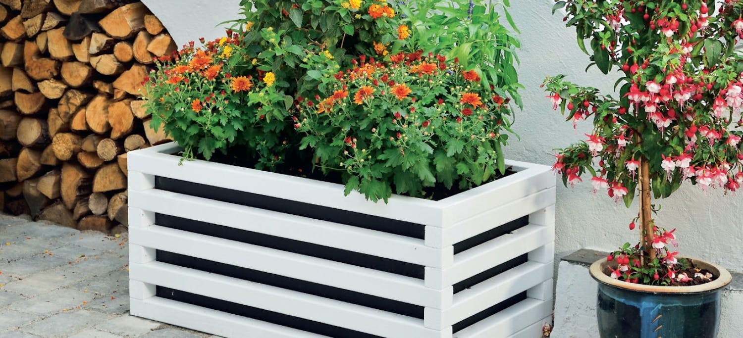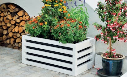 Blomlådan är så stor att den rymmer en planteringslåda eller planteringssäck. Den tillverkas av reglar i tre längder: 43 cm, 52 cm och 85 cm. De två längsta staplas på varandra så att de bildar en rektangel, medan de kortaste används till botten och överdel.