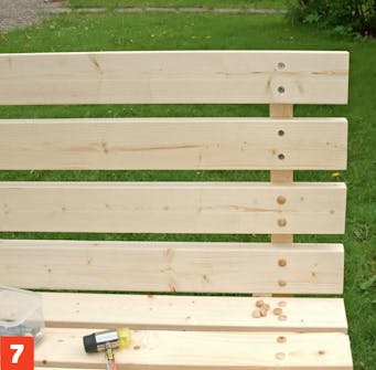 Vi täcker skruvarna som håller fast reglarna med proppar. Det förlänger bänkens livslängd och propparna, som är utformade för att dölja skruvarna, är en fin liten detalj.