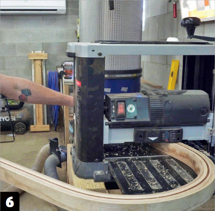 När limmet har torkat ska benen hyvlas jämna. Vi använder en planhyvel, men du kan också använda en handhyvel för att göra ytorna helt släta. Upprepa hela processen, så att du slutligen har två par ben.