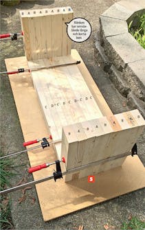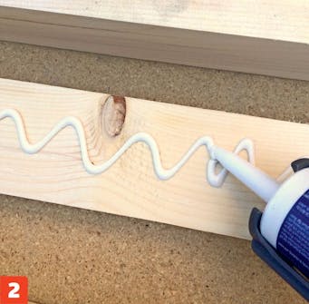 Bänken ska limmas enligt ett särskilt system, där de långa och de korta reglarna sätts i ett flätmönster. Du behöver avsätta lite tid till att låta limmet torka.