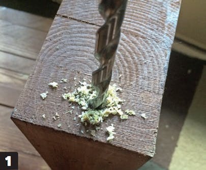 Vi har valt en variant som skruvas in i bänken. Alternativt kan du välja möbeltassar som bara ska spikas fast i träet. Då slipper du förborra.