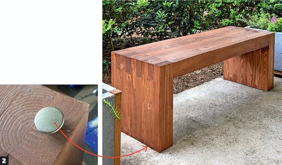 Använd ett transparent träskydd om du gärna vill bibehålla det ljusa träet. Stryk bänken med semitransparent eller heltäckande träskydd om du vill täcka träet helt och hållet.