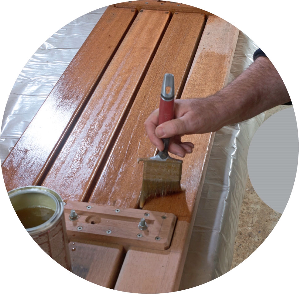 Det går ju t.ex. lika bra att använda tryckimpregnerat trä som kan målas. Då blir bänken dessutom mycket billigare. Om man väljer mahogny och teak så tål de utemiljön så bra att oljebehandling kan uteslutas.