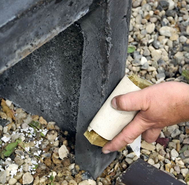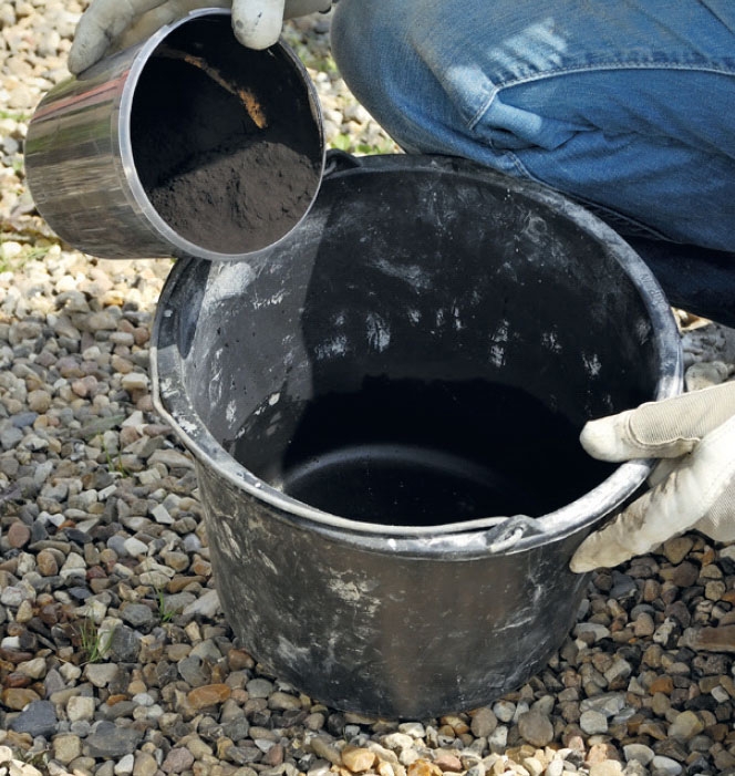 Betongen är här grovbetong som bara ska blandas noga med vatten. Det går åt cirka 26 kg färdigblandad betong till varje ben.