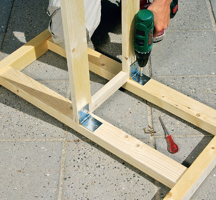 Alla delar sätts ihop med skruvar vilket gör arbetet lätt. Det är en fördel att ha en kap- och geringssåg.