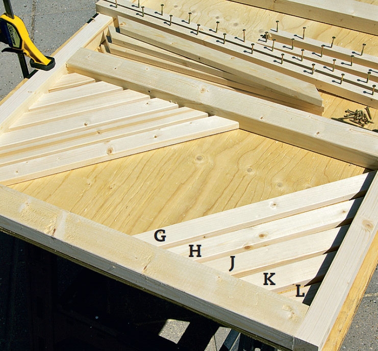 Plattorna ligger löst på falslister, som har skruvats fast i ramarna med 4 x 40 mm skruvar. För säkerhets skull fästs även stödlister (Q) på den övre stödregeln i underredet.