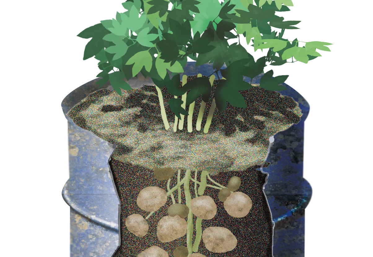 Fyll tunnan med jord cirka 1/6 del först. Sätt sedan ut potatis, täck dem och låt dem växa upp. Fyll därefter på med ett nytt lager jord, och sätt ytterligare några potatis. Växterna kommer söka sig uppåt, och de kan bli upp till 1,20 meter. Det motsvarar att kupa potatisen, men normalt kan det inte göras särskilt högt upp. När de alla har vuxit upp och blommat, vänder du på tunnan och häller ut massor av potatisar.