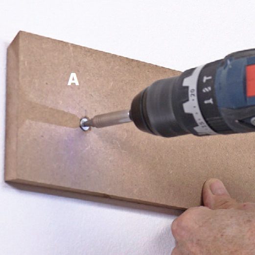 Skruva fast den andra listen (A) i väggen och se till att den är helt i våg. Har du som vi en gipsvägg, ska du komma ihåg att använda gipsplugg.