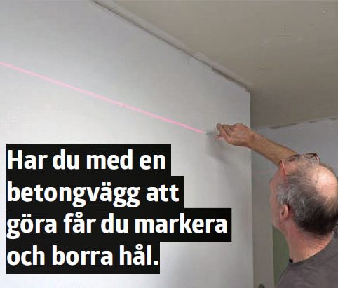 Ska du t ex hänga upp krokar så krävs det inte många millimeters avvikelse på höjden för att det ska se snett ut. Använder du en krysslaser kan du skruva upp krokarna direkt “i” laserlinjen, som du vet är i våg.
