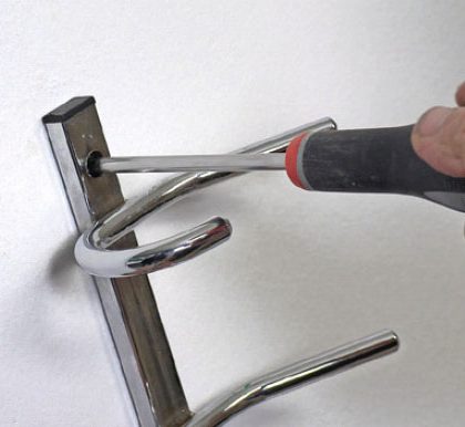 Skruva i krokarna med handkraft och se till att hålla dem vinkelrätt på väggen. Pekar krokarna åt olika håll är det nämligen ingen som lägger märke till att de sitter på samma höjd.