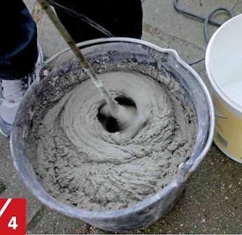 Konsistensen bör bli som tjockt vispad grädde. Då blir det lättast att arbeta med Multiputsbruket.