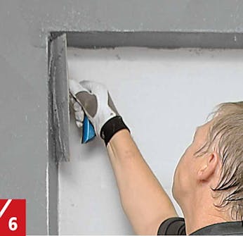 VIKTIGT: Skydda golvet med plast och papper och maskera dörrfoder. Det är svårt att styra stålputsbrädan så du spiller en del.