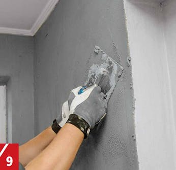 Var noggrann när bruket fördelas - framför allt i hörn och längs kanter. Det går rätt snabbt att lägga på det första skiktet om ytorna är relativt släta.