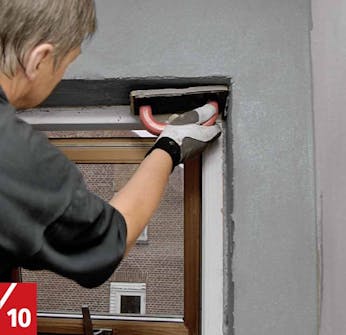 Dra ut putsbruket nerifrån och uppåt. Multiputsbruket känns segt att dra ut och det innebär att det behövs lite muskler för att kunna fördela det snyggt.