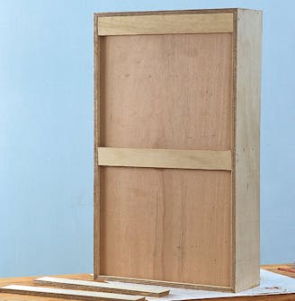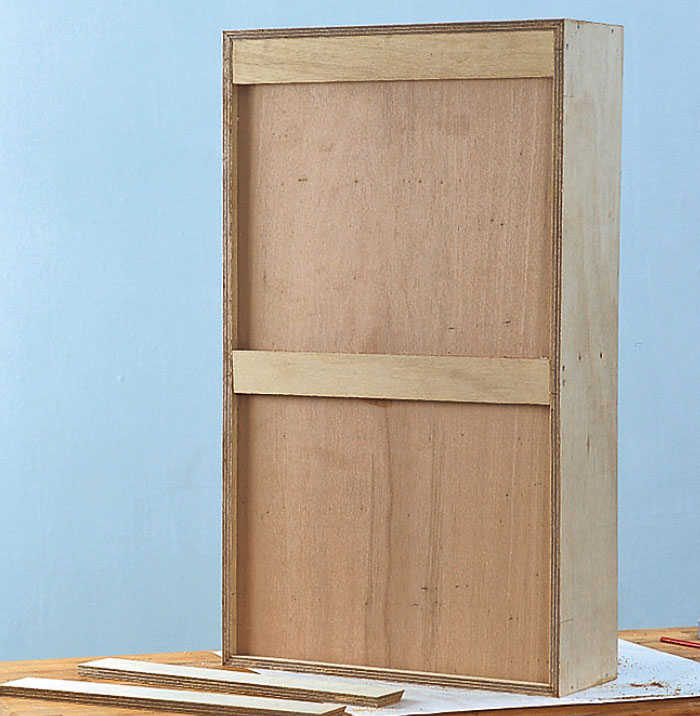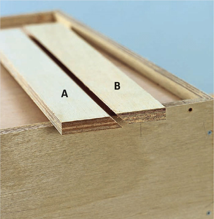 Bärlister för överskåp, hyllor och liknande sågas ut ur en plywoodskiva. I praktiken görs det genom att såga av en bred list i 45°-vinkel.