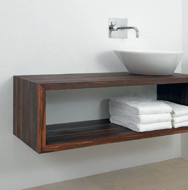 Till en svävande hylla, som inte har några stående sidor, kan man använda vanliga vattenrör av metall som limmas fast i hål i väggen. De ska borras långt in på hyllans baksida, så att de klarar belastningen uppifrån från hyllan.