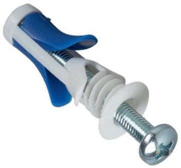 Den här pluggen har inte något material att gripa tag i (en gipsskiva är endast 13 mm tjock), så tricket är att få fäste i skivans bak-att bak sida. Antingen genom att nylonpluggen ”krullas ihop” och bildar en boll i hålrummet, eller med en metallplugg som utvidgar sig kraftigt när skruven sätts i, och därmed blir omöjlig att dra ut igen. Universalplugg kan även användas i skivor.