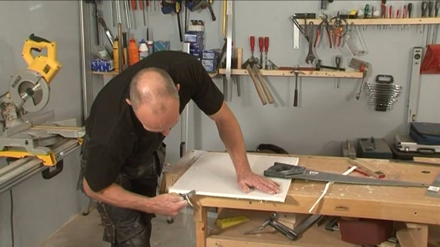 En tumstock, en gipshyvel, en snickarpenna, ett måttband, en timmermansvinkel och en hobbykniv. Mer behövs inte för att man ska kunna kapa och forma skivan som man vill. Det är exempelvis mycket lättare att kapa ett fint snitt i en gipsskiva än vad det är att såga till en fanerskiva.