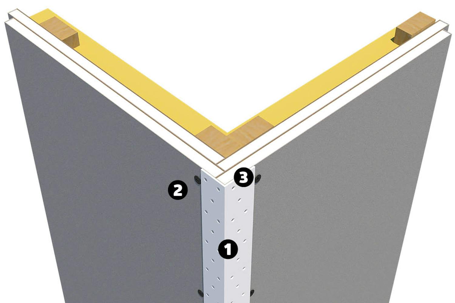 Hörnförstärkningar med fiberväv som förlängning av profilen används till förstärkning av nätputs – gäller både ute och inne.