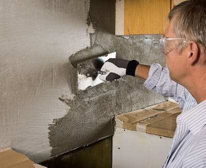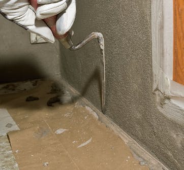 Låt putsskiktet härda ett dygn, innan du lägger på nästa skikt. Kontrollera att tejp, papper och plast fortfarande skyddar omgivningen.