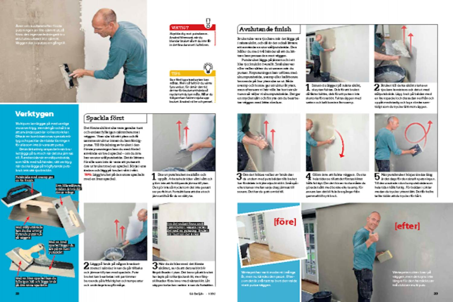 Den svåraste delen av arbetet är att finputsa ytan så den blir lika slät överallt för det kräver lite övning. Men den får du efter ett par kvadratmetrar och sedan går det rätt lätt.