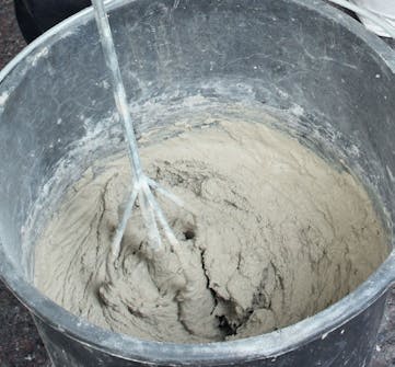 Efter ett tag vet du vilken konsistens bruket ska ha, och det är viktigt att den blir lika från blandning till blandning. Du ska använda bruket senast två timmer efter blandning. Tvätta spannen och verktygen mellan varje blandning.