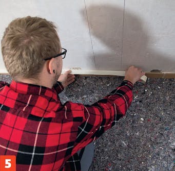 Om du vill det ska se ut som att väggen består av betongelement, kan du göra mönstret med vinyltejp som tas bort när väggen är färdigputsad.