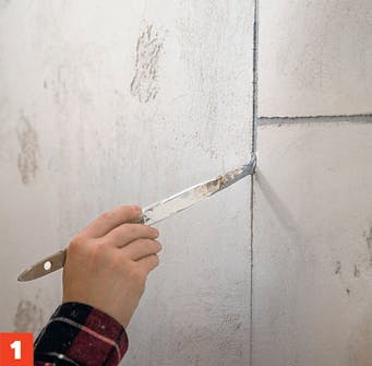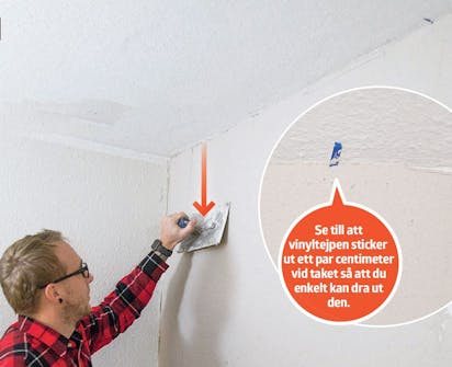Foga längs väggens kanter med en akrylfog, när du tagit bort eventuell tapet och ser till så att underlaget är fast.