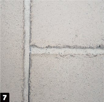 Det bearbetade området putsas med en bredspackel, så att det blir slätt igen men med pyttesmå ”håligheter” på ytan som det också finns i riktig betong, eftersom det sällan går att få ut all luft ur betongen.