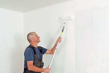 Pensla väggen med en primer (kallas också förankringsgrund). Den ser till att vävlimmet får bra grepp och inte genast sugs in i väggen. Du får också längre tid på dig att sätta upp glasfilten.