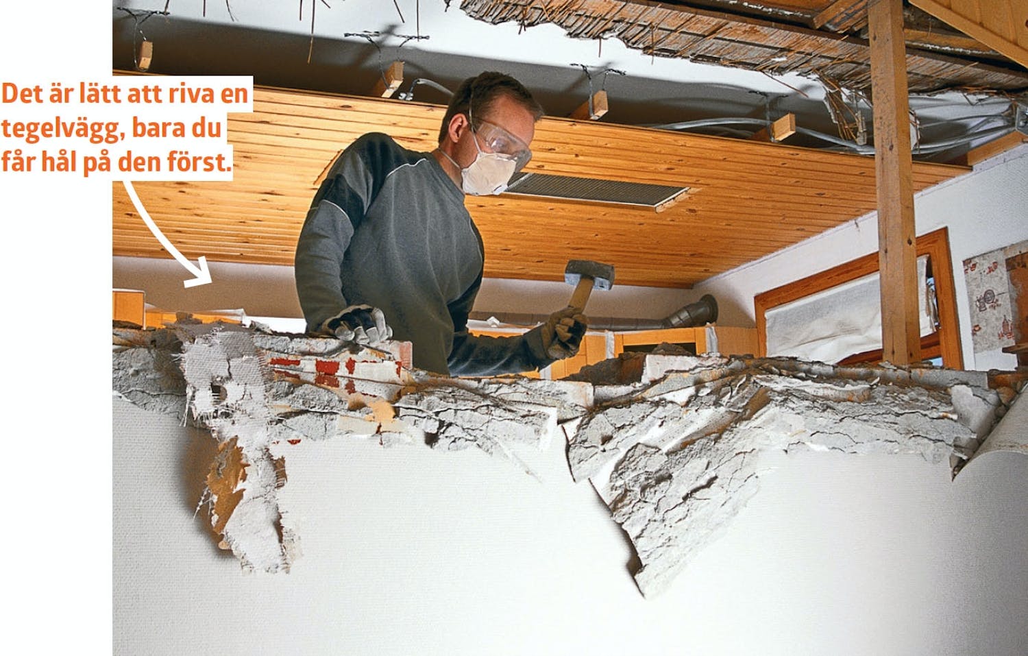 Rivning dammar. Och ska du slippa damm och skräp i hela huset, ska det täckas av ordentligt. Och du måste se upp med de intilliggande golven, så att de inte förstörs.
