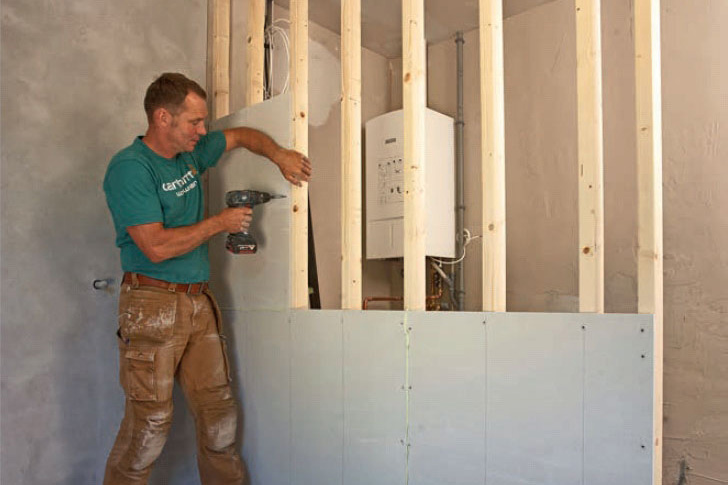 Sätt upp gipsskivor på hela väggen