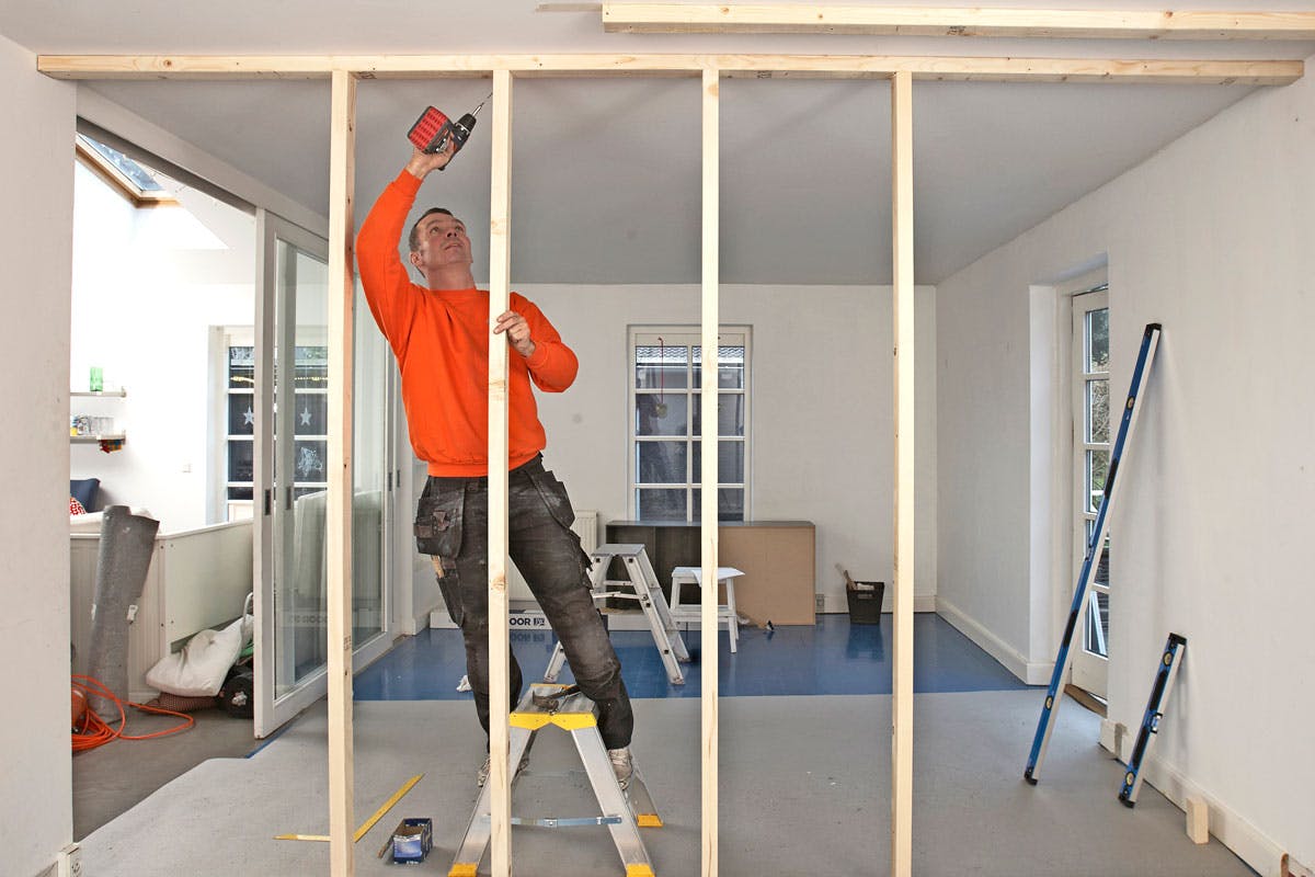 Men många hantverkare har ersatt träreglarna med stål - gipsskivan använder man ännu.