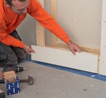 Sätt fast fibergipsskivorna när du har rest de reglar som behövs till nischerna. Om du använder flera skivbitar bör du sätta de minsta nederst där de syns minst (och ev. kan döljas av sockeln).