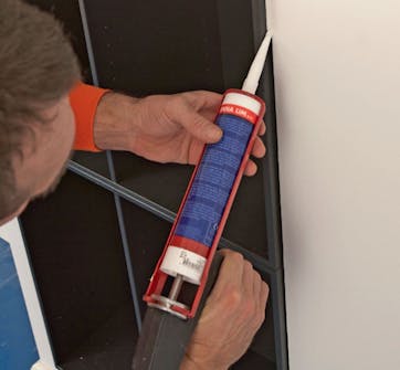 De övre skrivorna ska sluta 3-5 mm från taket så att du kan foga hela vägen med en akrylfogmassa. Du ska inte använda silikon för den kan inte målas över.