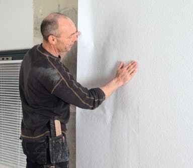 Slipa även i taket där du har spacklat. Vi föreslår att du skyddar dina ögon mot slipdamm från taket och att du använder andningsmask. Slipa färdigt i taket innan du sätter upp tapet.