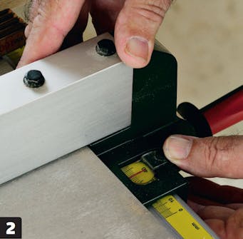 Ställ in parallellanslaget. Använd millimeterskalan, om maskinen har en sådan, och ställ in önskat mått, vilket motsvarar avståndet från anslag till sågklinga.