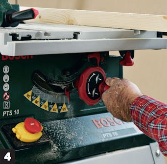 Ställ in höjden på klingan. Sågklingan ska bara precis komma upp genom regeln och sticka upp några få millimeter.